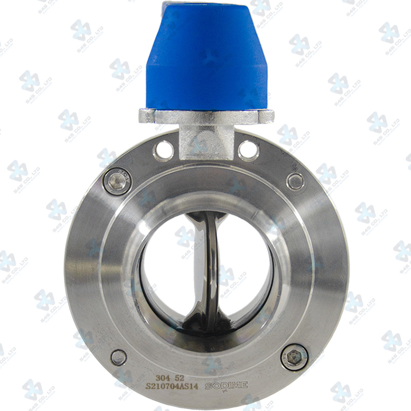Van bướm vi sinh Đóng mở tay ; Tay K5 2 vị trí ; Inox 316L/VITON ; SMS ; 2Inch (OD51mm) ; Nối hàn-rắc co ; Sodime