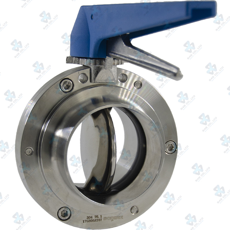 Van bướm vi sinh Đóng mở tay ; Tay K10 2 vị trí ; Inox 304/EPDM ; DIN11851-1 ; DN25 (OD28mm) ; Nối rắc co ; Sodime