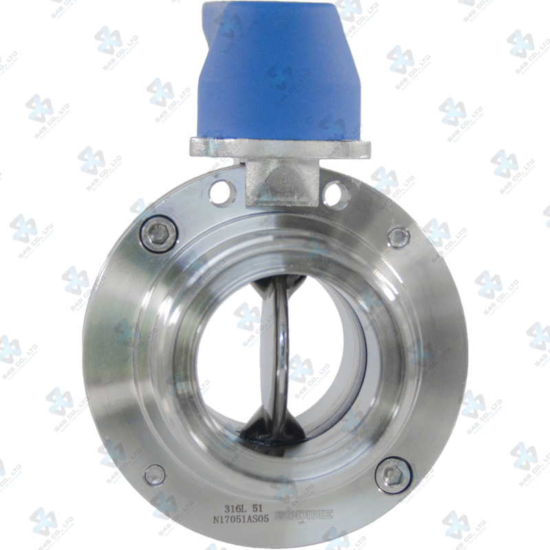 Van bướm vi sinh Đóng mở tay ; Tay K20 13 vị trí ; Inox 316L/VITON ; SMS ; 2Inch (OD51mm) ; Nối rắc co ; Sodime