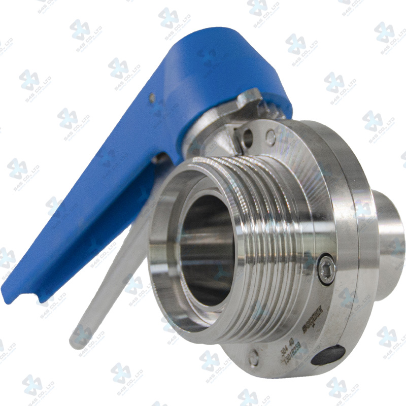 Van bướm vi sinh Đóng mở tay ; Tay K20 13 vị trí ; Inox 304/VITON ; DIN11851-1 ; DN40 (OD40mm) ; Nối hàn-rắc co ; Sodime