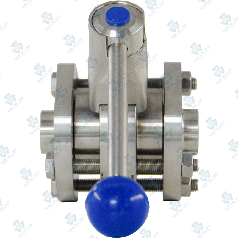 Van bướm vi sinh Đóng mở tay ; VVF ; WAF4 ; Tay rút 10-65 3/4 vị trí ; Inox 316L/SILICONE ; DIN11851-2 ; DN32 (OD35mm) ; Nối hàn ; Bardiani