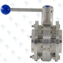 Van bướm vi sinh Đóng mở tay ; VVF ; WAF4 ; Tay rút 76-104 3/4 vị trí ; Inox 316L/SILICONE ; DIN11851-2 ; DN80 (OD85mm) ; Nối hàn ; Bardiani