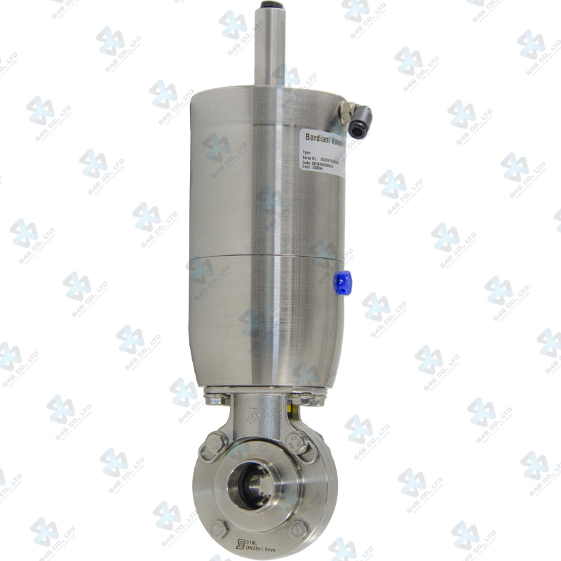 Van bướm vi sinh Đóng mở khí nén ; ZVF ; Mach83 lò xo tự hồi NC/NO ; Inox 316L/EPDM ; SMS ; 1.5Inch (OD38mm) ; Nối hàn ; Bardiani Bao gồm Gá gắn cảm biến
