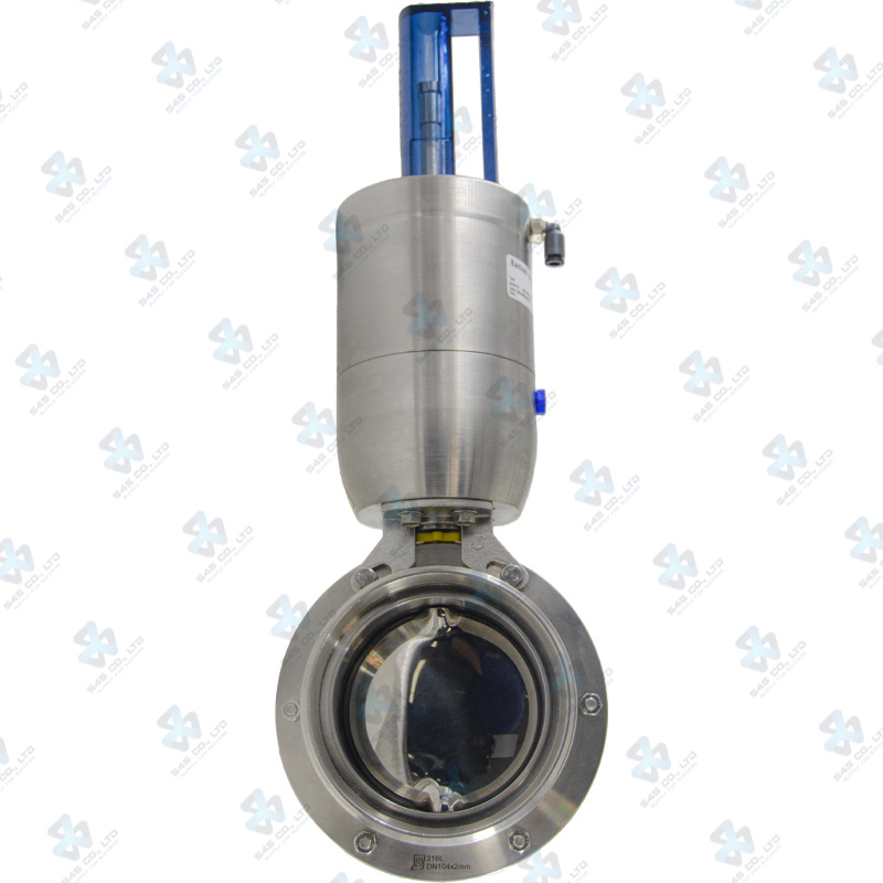 Van bướm vi sinh Đóng mở khí nén ; ZVF ; Mach98 lò xo tự hồi NC/NO ; Inox 316L/FKM/VITON ; DIN11851-2 ; DN100 (OD104mm) ; Nối hàn-rắc co ; Bardiani Bao gồm Gá gắn cảm biến