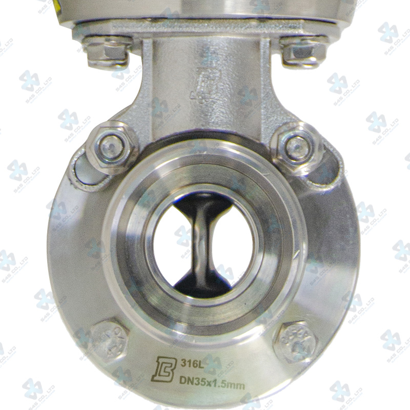 Van bướm vi sinh Đóng mở khí nén ; ZVF ; Mach83 lò xo tự hồi NC/NO ; Inox 316L/SILICONE ; DIN11851-2 ; DN32 (OD35mm) ; Nối hàn-rắc co ; Bardiani Bao gồm Gá gắn cảm biến