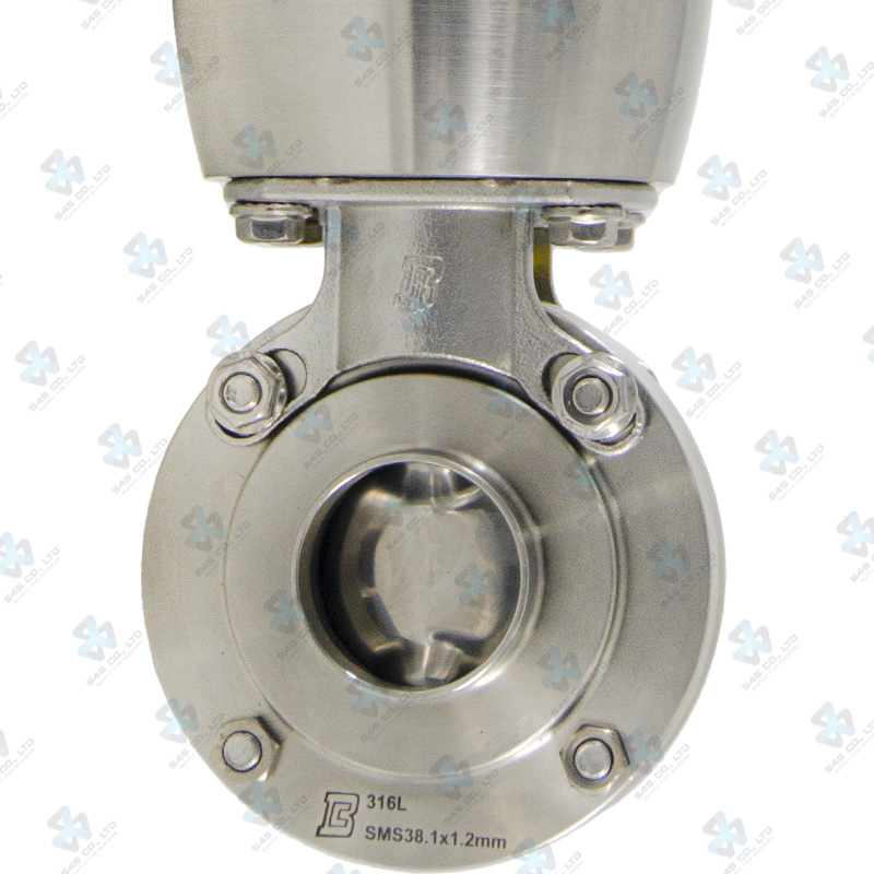 Van bướm vi sinh Đóng mở khí nén ; ZVF ; Mach83 tác động kép ; Inox 316L/FKM/VITON ; SMS ; 1.5Inch (OD38mm) ; Nối hàn ; Bardiani Bao gồm J-Giotto 2EV 24VDC 2PNP PG11 Led Board