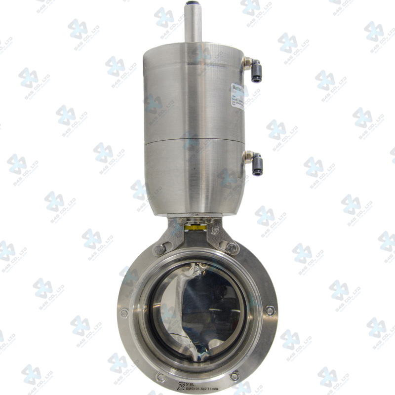 Van bướm vi sinh Đóng mở khí nén ; ZVF ; Mach98 tác động kép ; Inox 316L/SILICONE ; DIN11864-1 ; 4Inch (OD101.6x2.11mm) ; Nối hàn-rắc co ; Bardiani