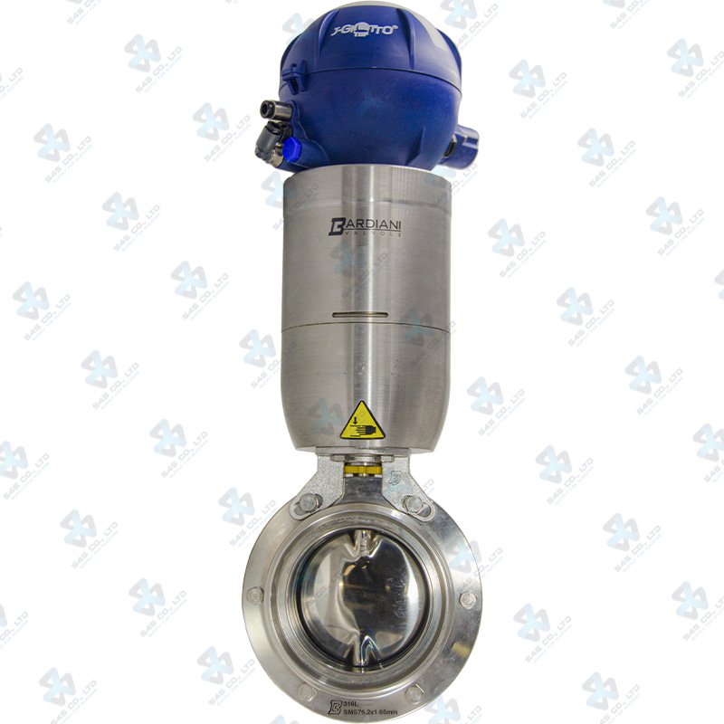 Van bướm vi sinh Đóng mở khí nén ; ZVF ; Mach98 tác động kép ; Inox 316L/SILICONE ; DIN11864-1 ; 3Inch (OD76.2x1.65mm) ; Nối rắc co ; Bardiani Bao gồm J-Giotto 2EV 24VDC 1PNP PG11 Led Board